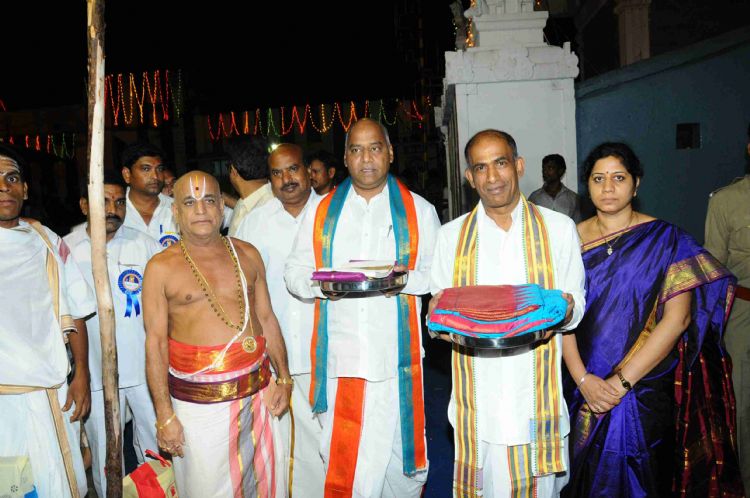TTD EO Dr D Samba Siva Rao accompanied by Tirumala JEO Sri KS Sreenivasa Raju presented silk vastrams to Simhadri Sri Varaha Lakshmi Narasimha Swamy on Tuesday on behalf of TTD as per temple tradition.