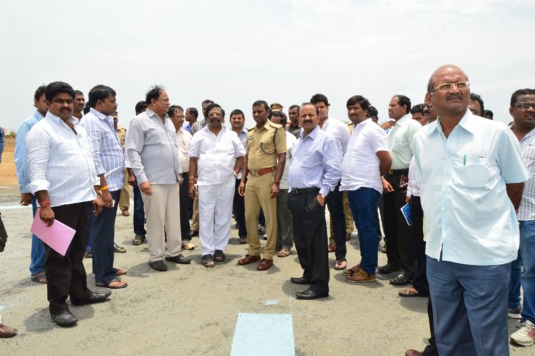 Transport Minister Sidda Raghava Rao, Karanam Balaram, Dist Collector Hari Jawaharlal and SP Ch Srikanth inspecting arrangements for CM Programme at Polavaram, Prakasam District on April 24, 2015.