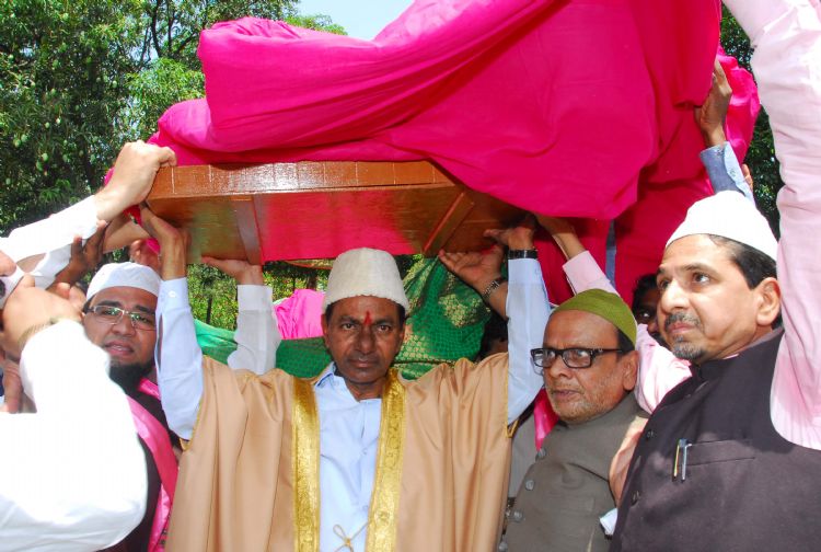 Telangana Chief Minister K Chandrasekhar Rao gave a traditional send off to the Chader to be presented at the Dargah of Hazrat Khaja Moinuddin Chishty Gareeb Nawaz at Ajmer in Rajasthan here on Friday.