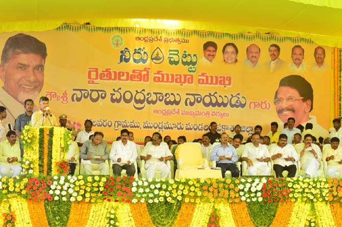 Chief Minister Andhra Pradesh N. Chandrababu Naidu public meeting at Polavaram village in Prakasam District on April 25, 2015.