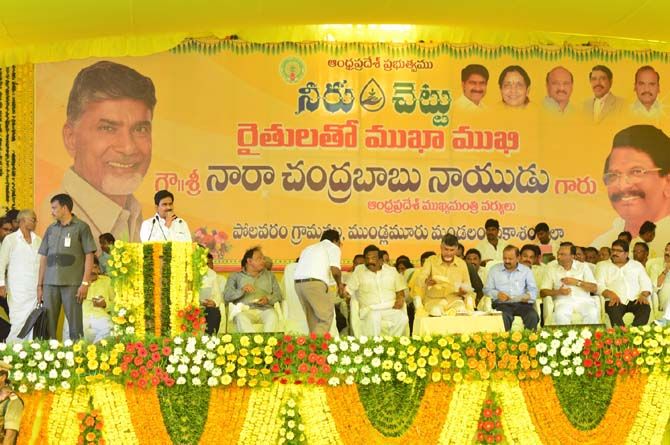 Chief Minister Andhra Pradesh N. Chandrababu Naidu public meeting at Polavaram village in Prakasam District on April 25, 2015.