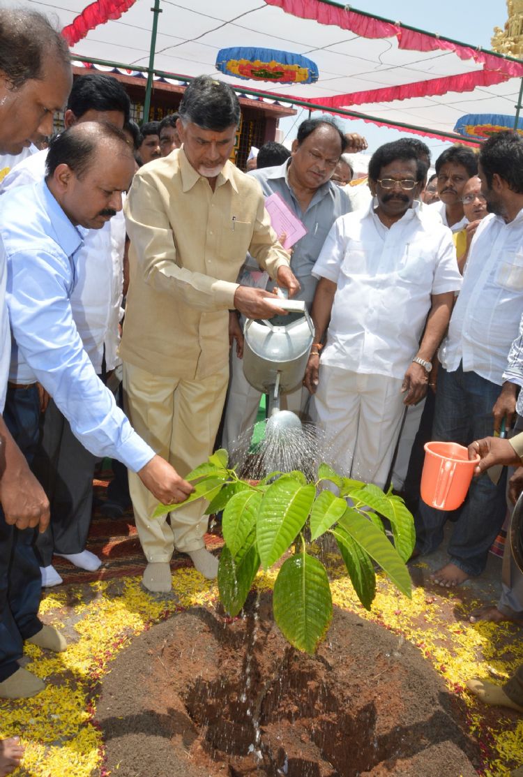 Chief Minister N.Chandra Babu Naidu planting seedlings at Gundlakamma Reservior on April 25, 2015.