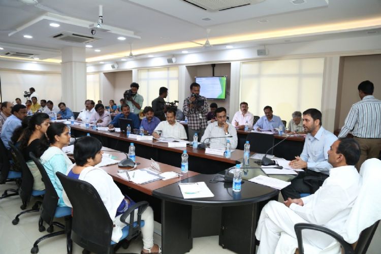 Etela Rajender, Minister for Finance & Civil Supplies is seen holding a Meeting with Joint Collectors on Civil Supplies Department on 28th April, 2015 at CGG Campus,Dr.MCR HRD,Jubliee Hills,Hyderabad.