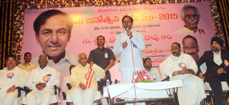 Telangana CM K. Chandrasekhar Rao, Union Minister Bandaru Dattathreya, Home Minister Nayini Narasimha Reddy and others participated in May Day Celebrations held at Ravindrabharathi on 1st May 2015.