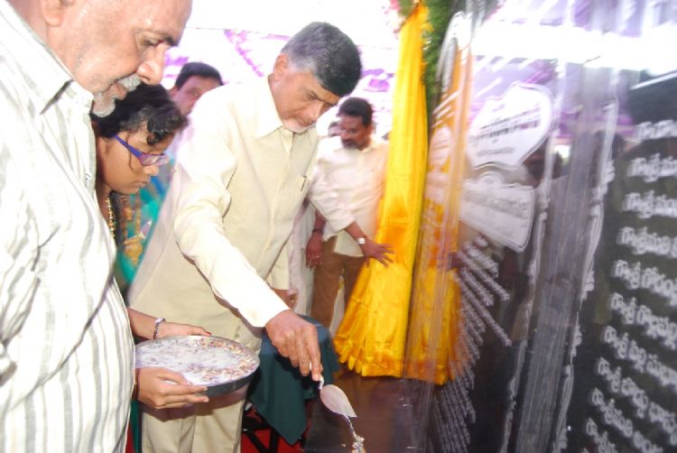 AP Chief Minister N. Chandrababu Naidu laying the foundation stone for the tourism project in Kakinada on 1st May 2015.