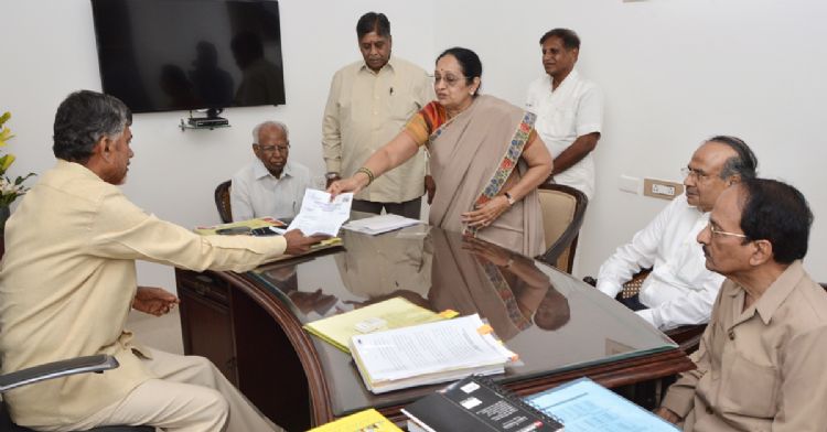 Smt V.L. Indira Dutt, president of Andhra Chamber of Commerce met Chief Minister of Andhra Pradesh N. Chandrababu Naidu on 2nd May 2015 at his residence.