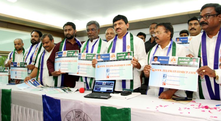 YSRCP Telangana president Sri Ponguleti Srinivasa Reddy and others Launching YSRCP Telangana website on 2nd May 2015.