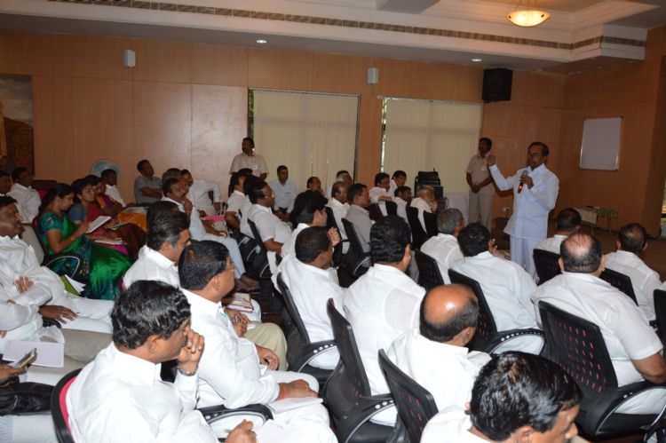 Telangana CM K. Chandrasekhar Rao sharing his experiences with TRS MLAs Orientation program held in Nagarjuna Sagar on Sunday.