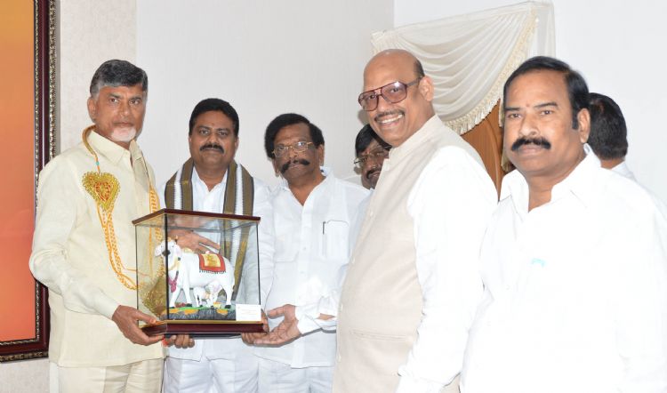 Arya Vyshya Sangam President Met N.Chandrababu Naidu Chief Minister of Andhra Pradesh at Lake View Guest House on May 9, 2015.