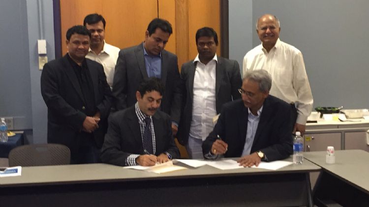 Jayesh Ranjan, IT Secretary Government of Telangana exchanging Memorandum of Understanding with Viv Penninti, Chairman InRythm Inc in the presence of Minister of IT, Telangana, Dr. Raj Reddy, Ganesh Begala (MLA) and Jeevan Reddy (MLA)