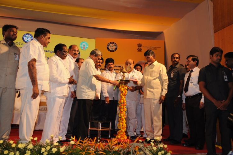 Chief Minister N. Chandrababu Naidu and Defence Minister Manohar Parikar launched social security schemes in Vijayawada on Saturday.