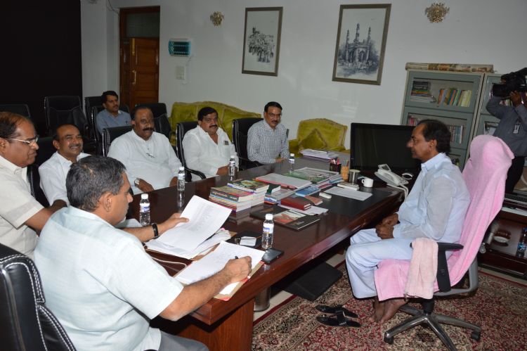 Telangana CM KCR held Review Meeting on RTC Strike issue, at Camp Office with Ministers and concern officials on May 10, 2015.