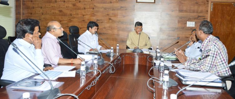 N.Chandrababu Naidu Hon'ble Chief Minister of Andhra Pradesh is seen in a Review Meeting on Excise Policy at Secretariat on May 11, 2015.