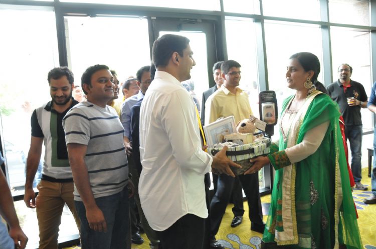 Nara Lokesh in Smart Village Adoption programme at Washington, DC. Katragadda Krishna Prasad donated a cheque of Rs 1 Lakh Dollar for Smart Villages Programme.