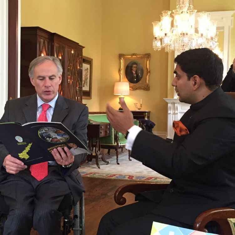 Nara Lokesh met with Texas Governor Greg Abbott at Governor's mansion on 12th May, 2015.