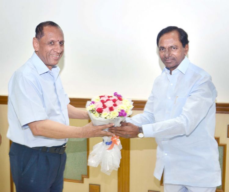 K Chandrashekhar Rao, Chief Minsiter of Telangana met E S L Narasimhan, Governor at Raj Bhavan on May 13, 2015.