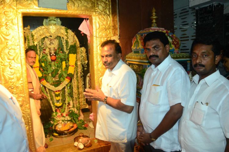 Former Ongole MP Magunta Srinivasulu Reddy offering pooja at Gaddalagunta Hanuman Temple on the account of Hanuman Jayanthi on May 13, 2015.