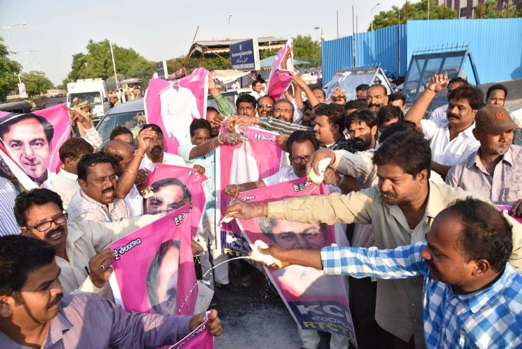 Victory celebrations by APSRTC employees to call off Bus Strike - Both Telangana & Andhra Government accepted their demands on May 13, 2015.