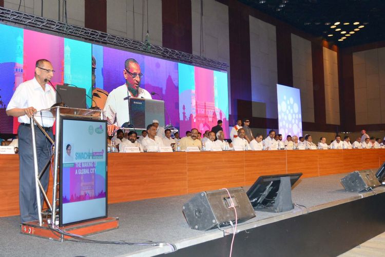 E S L Narasimhan, Governor and Telangana CM KCR Participated in Swachh Hyderabad Programme at HICC, Madhapur, Hyderabad on 16th May 2015.