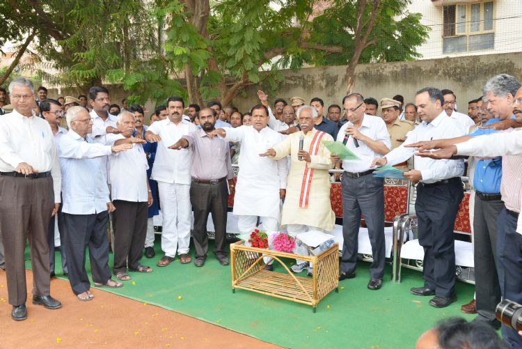 E S L Narasimhan, Governor and Union Minister Bandaru Dattathreya Participated in Swachh Hyderabad Programme at HICC, Madhapur, Hyderabad on 16th May 2015.