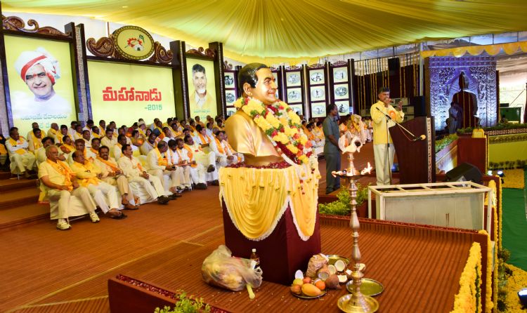 TDP Chief N. Chandrababu Naidu addressing the party cadre on First day of Mahanadu - 2015 at Gandipet on Wednesday.
