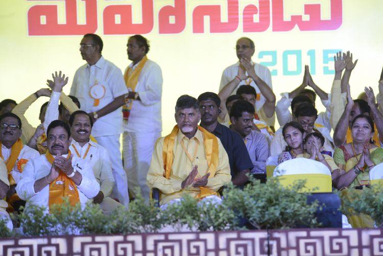 TDP President and Andhra Pradesh Chief Minister N.Chandrababu Naidu attended on second day of Telugu Desam Party's annual party conference `Mahanadu'-2015 at Gandipet in Hyderabad on May 28, 2015.