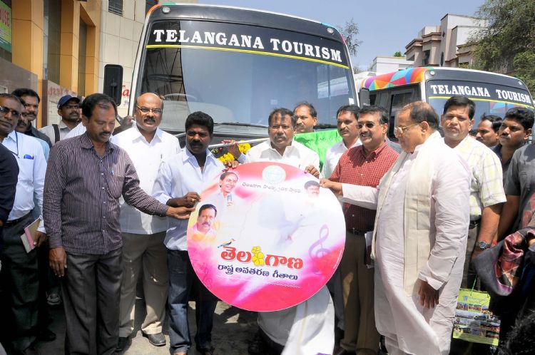 Telangana Tribal Welfare Minister Chandulal Launched Hop On-Hop Off bus service in Begampet Tourism Plaza on the occassion of Telangana Formation Day Celebrations on May 30, 2015.