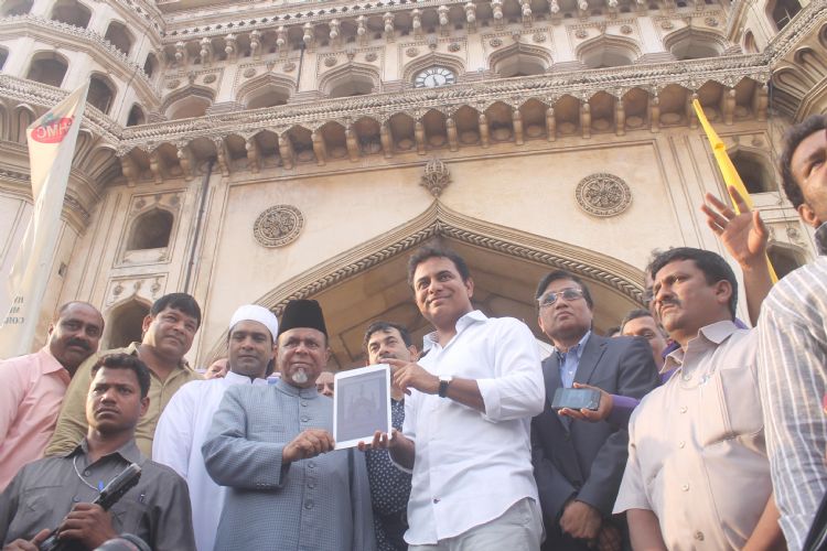 Telangana IT Minister K. Taraka Rama Rao and Charminar MLA Pasha Qadri launched free wifi service at Charminar on 2nd June 2015.