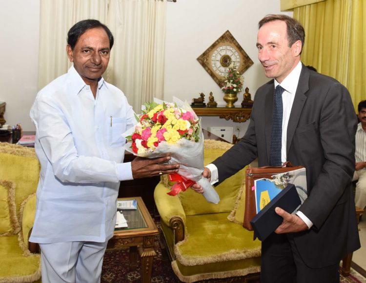 Bernard Tabary, MD and Global CEO of French Company Keolis called on Chief Minister K. Chandrashekhar Rao on 4th June 2015 at Camp Office.