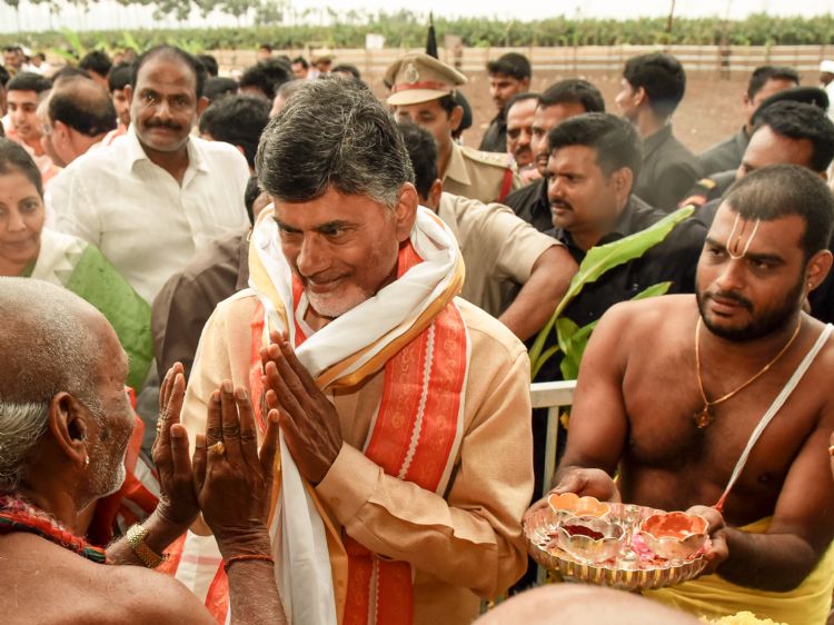 Andhra Pradesh Chief Minister Nara Chandrababu Naidu performed the 'Bhoomi Puja' for State's new capital 'Amaravathi' at Tallayapalem in Tulluru mandal of Guntur district on Saturday.