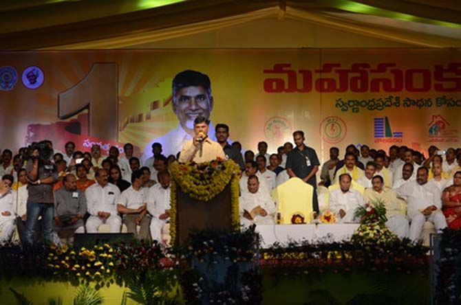 Mahasankalpam in Mangalgiri of Guntur district on Monday evening by AP Chief Minister Chandra Babu Naidu.