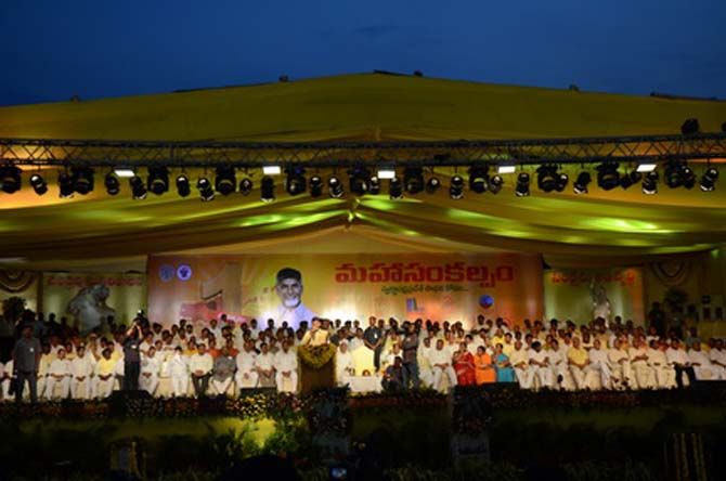 Mahasankalpam in Mangalgiri of Guntur district on Monday evening by AP Chief Minister Chandra Babu Naidu.