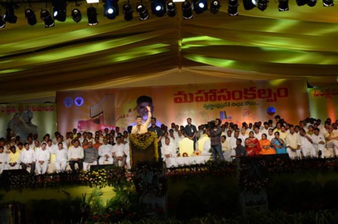 Mahasankalpam in Mangalgiri of Guntur district on Monday evening by AP Chief Minister Chandra Babu Naidu.