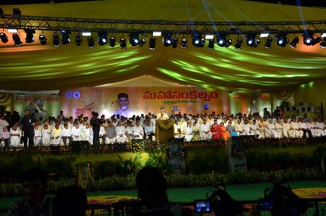 Mahasankalpam in Mangalgiri of Guntur district on Monday evening by AP Chief Minister Chandra Babu Naidu.