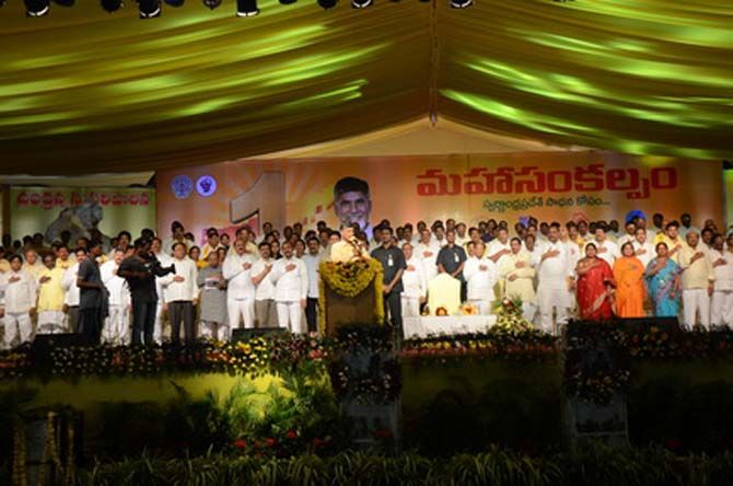 Mahasankalpam in Mangalgiri of Guntur district on Monday evening by AP Chief Minister Chandra Babu Naidu.