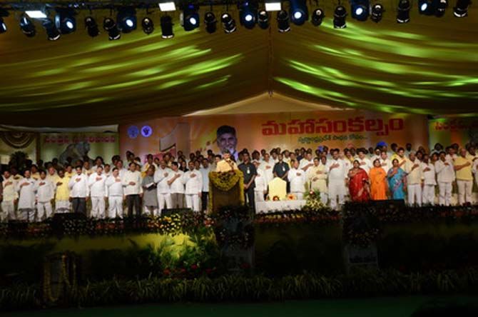 Mahasankalpam in Mangalgiri of Guntur district on Monday evening by AP Chief Minister Chandra Babu Naidu.