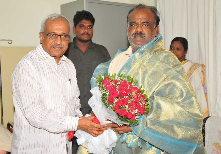 Dr.S.Raja Sadram secretary TSLA felistating Sri.K.Madhu Sudhan Chary on the completion of one year in office as a Speaker of TSLA.
