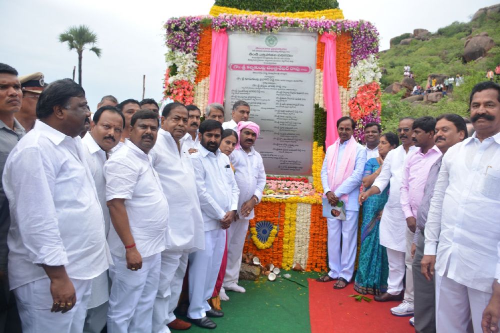 Chief Minister K. Chandrasekhar Rao Laying foundation stone to Dindi Project at Sivannagudem of Nalgond District on June 12, 2015.