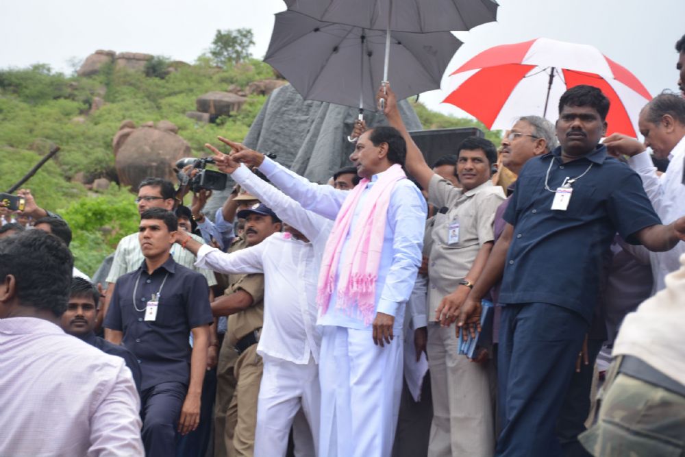 Chief Minister K. Chandrasekhar Rao Laying foundation stone to Dindi Project at Sivannagudem of Nalgond District on June 12, 2015.