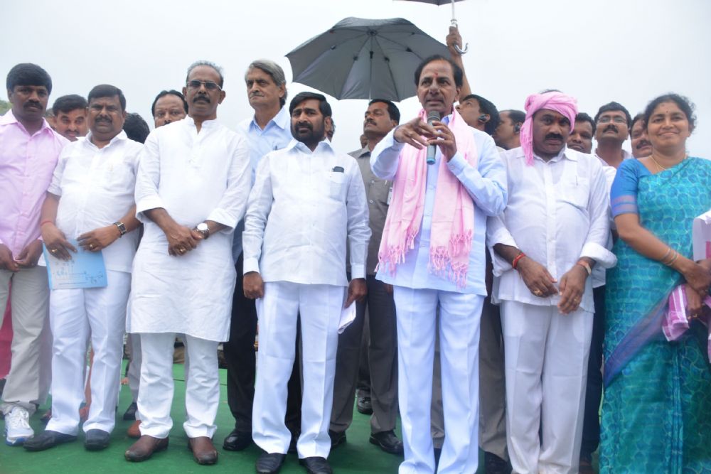 Chief Minister K. Chandrasekhar Rao Laying foundation stone to Dindi Project at Sivannagudem of Nalgond District on June 12, 2015.
