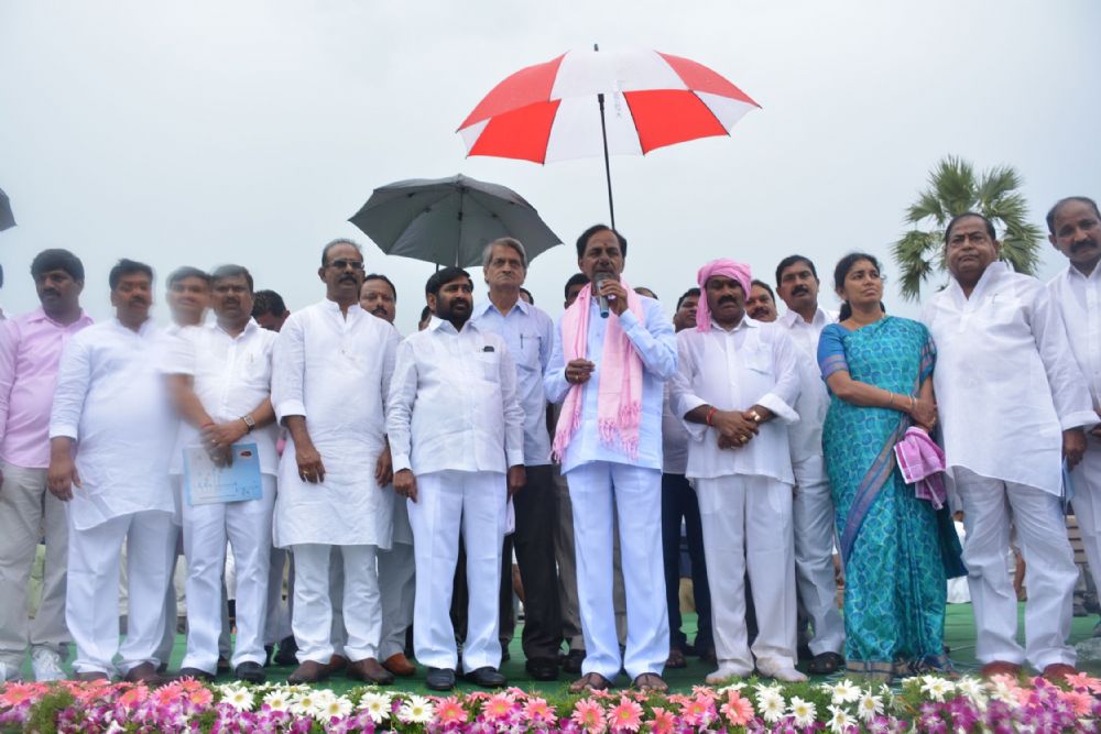 Chief Minister K. Chandrasekhar Rao Laying foundation stone to Dindi Project at Sivannagudem of Nalgond District on June 12, 2015.