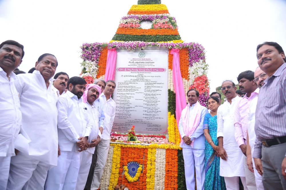 Chief Minister K. Chandrasekhar Rao Laying foundation stone to Dindi Project at Sivannagudem of Nalgond District on June 12, 2015.