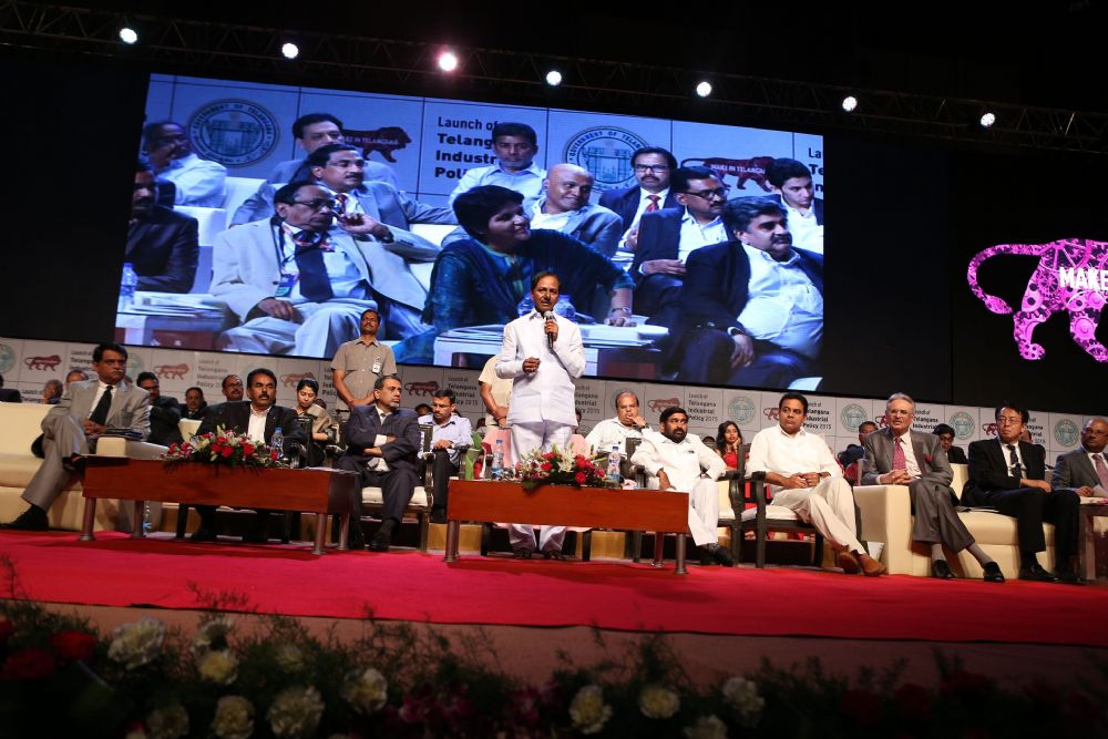 Chief Minister K. Chandrashekhar Rao launching Telangana Industrial Policy 2015 at HICC on June 12, 2015.