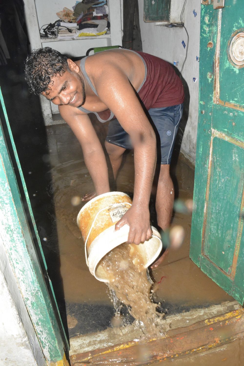 Pedestrians walk through the flooded streets after heavy rain lashed Hyderabad on June 12, 2015.