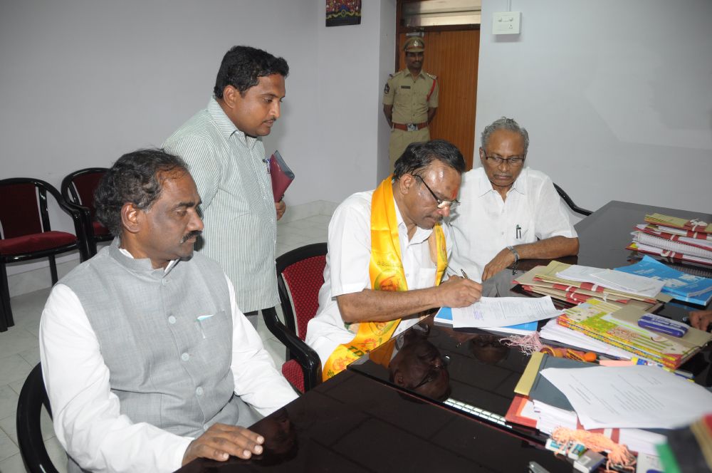 Former MP and TDP Leader Magunta Srinivasulu Reddy filed his nomination as MLC candidate. Magunta submitted his nomination papers to Joint Collector Harijawaharlal on June 12, 2015.