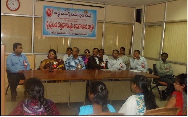 World Blood Donor Day was observed on 14th June.15, Rally started at YMCA, Narayanguda with about 300 students that was flagged off by Dr. Amarinder Reddy, Director, IPM, Dr. Padmaja, DM & HO, Hyderabad and Dr. Satyanarayana Reddy, State Liaision Officer, NSS, followed by a meeting, which was organized by State AIDS Control Society, Andhra Pradesh and Telangana in association with State blood Transfusion Council, Hyderabad.