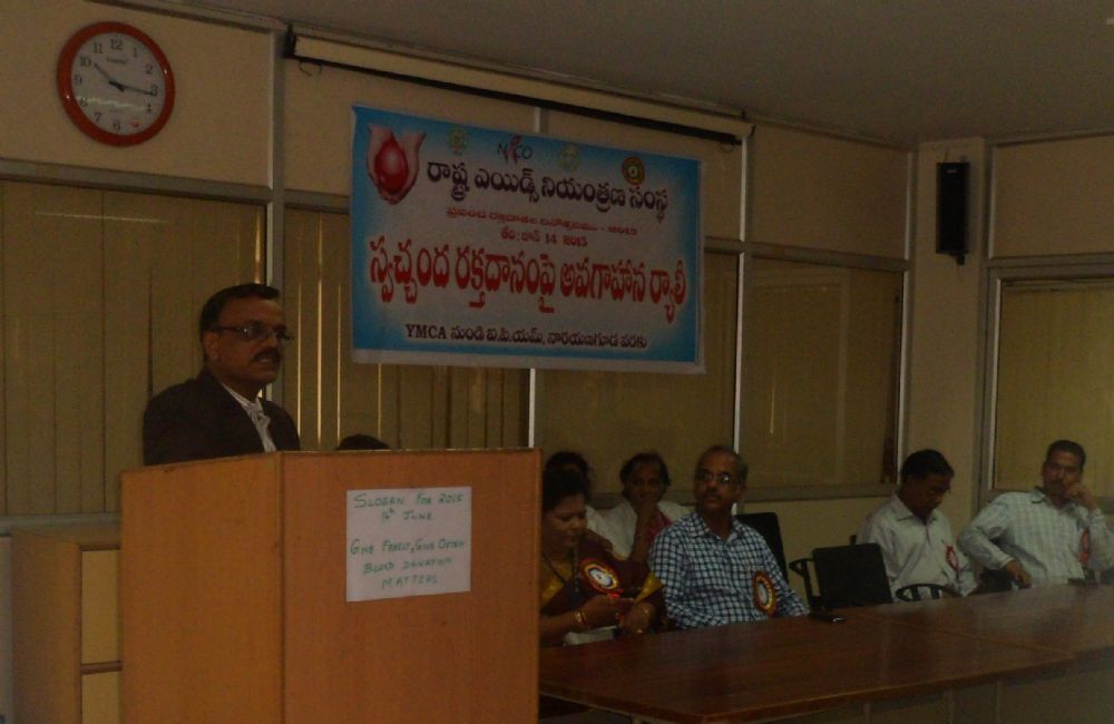 World Blood Donor Day was observed on 14th June.15, Rally started at YMCA, Narayanguda with about 300 students that was flagged off by Dr. Amarinder Reddy, Director, IPM, Dr. Padmaja, DM & HO, Hyderabad and Dr. Satyanarayana Reddy, State Liaision Officer, NSS, followed by a meeting, which was organized by State AIDS Control Society, Andhra Pradesh and Telangana in association with State blood Transfusion Council, Hyderabad.