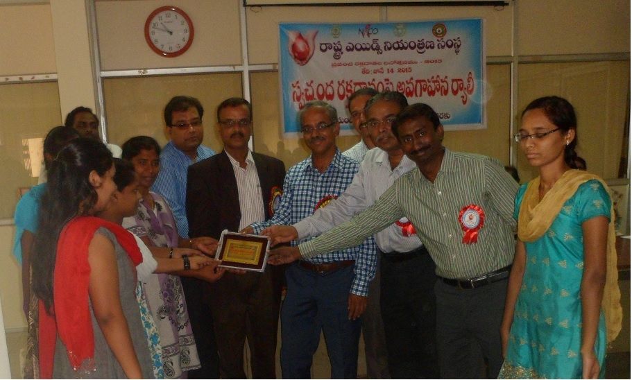 World Blood Donor Day was observed on 14th June.15, Rally started at YMCA, Narayanguda with about 300 students that was flagged off by Dr. Amarinder Reddy, Director, IPM, Dr. Padmaja, DM & HO, Hyderabad and Dr. Satyanarayana Reddy, State Liaision Officer, NSS, followed by a meeting, which was organized by State AIDS Control Society, Andhra Pradesh and Telangana in association with State blood Transfusion Council, Hyderabad.
