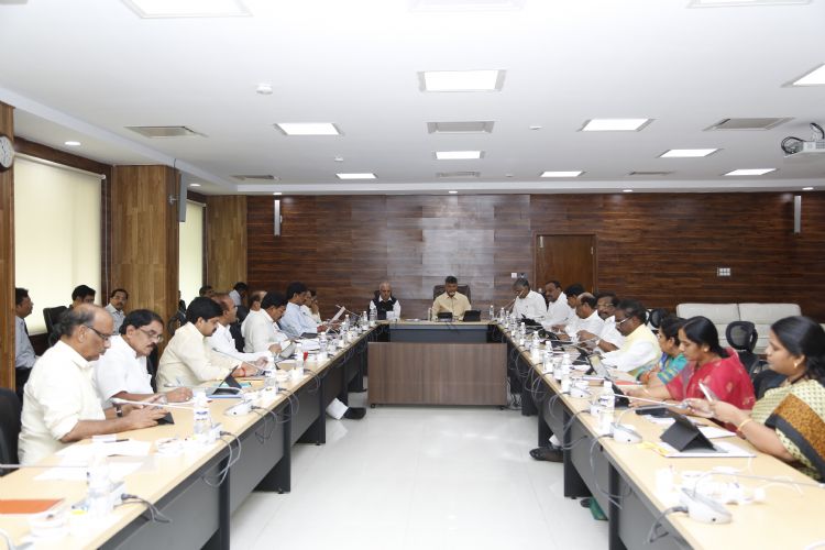 Andhra Pradesh Chief Minister Chandrababu Naidu, Chief Secretary I V Krishna Rao present in AP Cabinet meeting held on 17th June 2015 at Secretariat in Hyderabad.