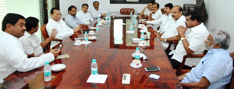 YSRCP leaders at a meeting held at party central office, Hyderabad on Wednesday to discuss the political developments and accordingly chalk out strategy.